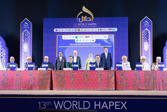 ธนาคารเพื่อการส่งออกและนำเข้าแห่งประเทศไทย (EXIM BANK) ร่วมกับธนาคารอิสลามแห่งประเทศไทย (ibank) สำนักงานคณะกรรมการกลางอิสลามแห่งประเทศไทยสำนักงานคณะกรรมการอิสลามประจำกรุงเทพมหานครสำนักงานคณะกรรมการอิสลามประจำจังหวัดสมุทรปราการ มหาวิทยาลัยสงขลานครินทร์ ศูนย์อุตสาหกรรมฮาลาลไทย สถาบันอาหาร สถาบันพัฒนาวิสาหกิจขนาดกลางและขนาดย่อม ขยายความร่วมมือกับอีก 6 หน่วยงานในภาคใต้ ประกอบด้วย สำนักงานคณะกรรมการอิสลามประจำจังหวัดยะลา ปัตตานี นราธิวาส สงขลา สตูล และกระบี่ภายใต้ข้อตกลงความร่วมมือ“โครงการส่งเสริมและสนับสนุนผู้ประกอบการสินค้าฮาลาลสู่การส่งออก” ในงาน WORLD HAPEX 2024 จังหวัดสงขลา เพื่อสร้างผู้ประกอบการไทยให้พร้อมพัฒนาธุรกิจฮาลาล โดยเฉพาะอาหารฮาลาลของไทยให้แข่งขันได้ในเวทีการค้าโลกมีเครือข่ายพันธมิตรที่อยู่เคียงข้างผู้ประกอบธุรกิจสินค้าฮาลาลตลอดวงจรธุรกิจ ด้วยองค์ความรู้ ประสบการณ์ และช่องทางการค้าที่มีประสิทธิภาพ เป็นฟันเฟืองสำคัญในการขับเคลื่อนการเติบโตของภาคการส่งออกและการเติบโตทางเศรษฐกิจ สังคม และสิ่งแวดล้อมของไทยและโลก